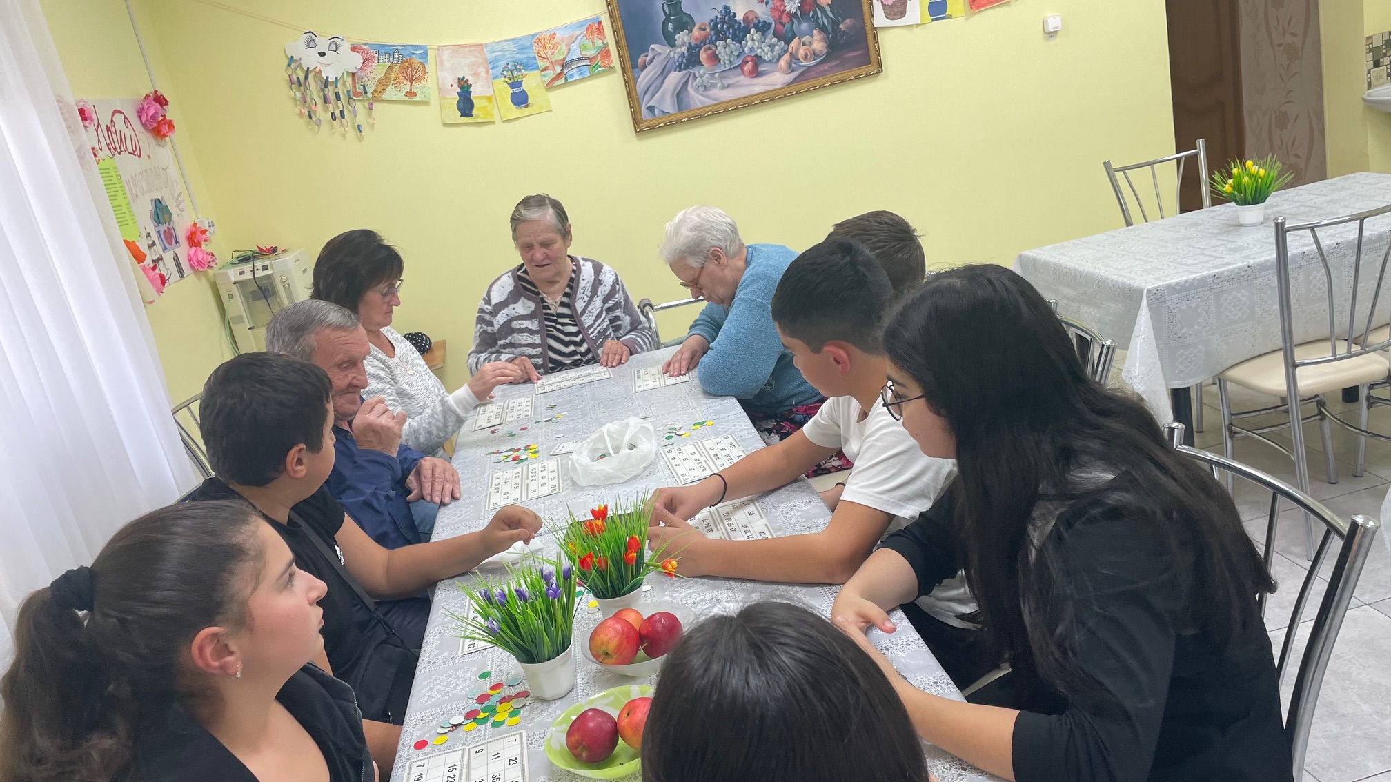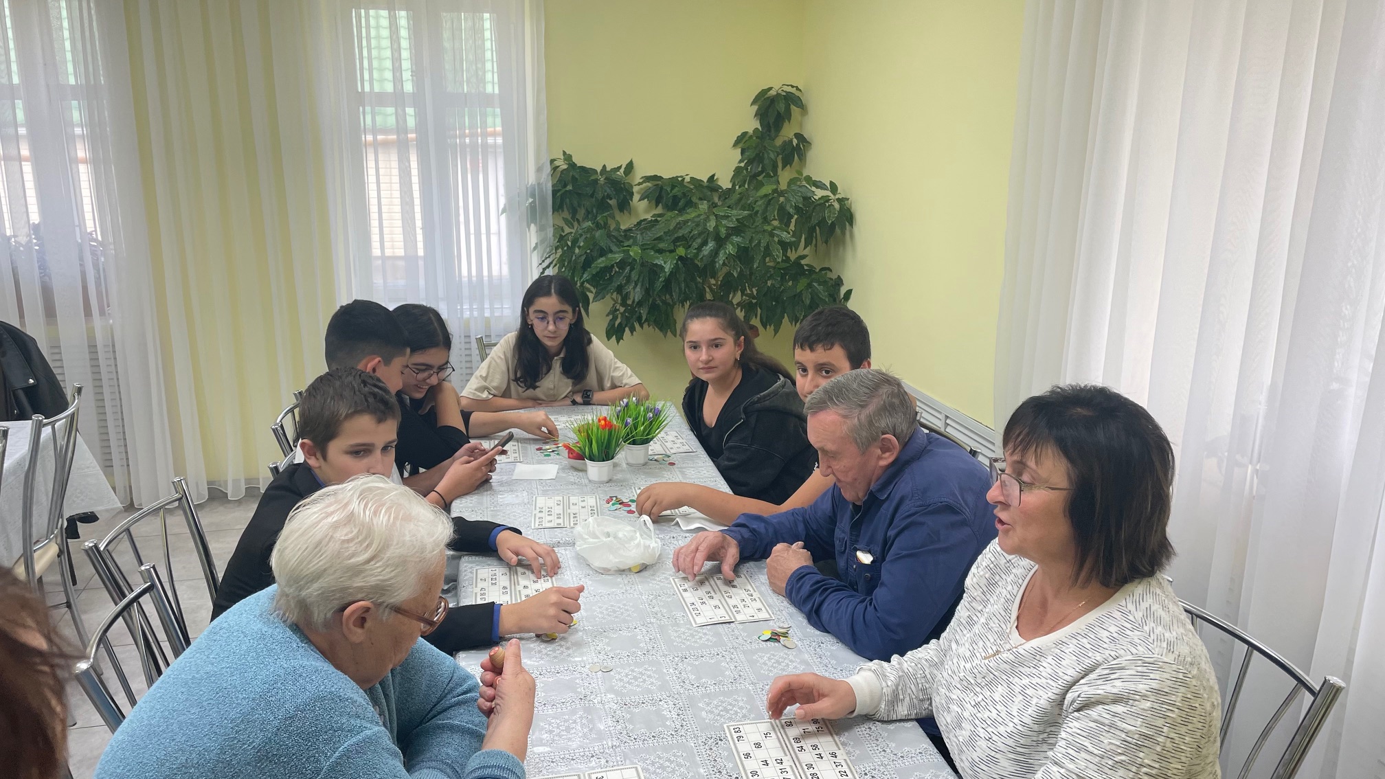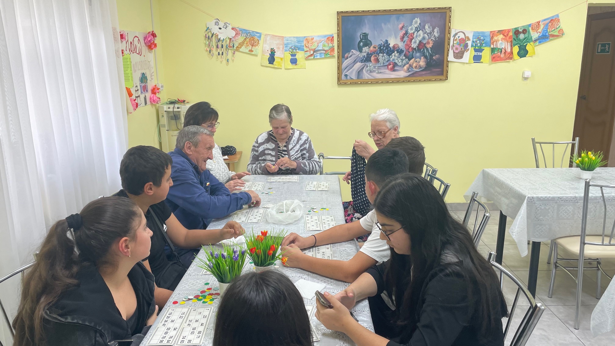 Под руководством классного руководителя шестиклассники школы №8 пришли в гости к проживающим в стационарном отделении ст. Суворовской. Дети принесли сладости, чай и отличное настроение. За столом ребята рассказывали о своих достижениях и интересовались жизнью жителей стационара, после чего танцевали и играли в лото.