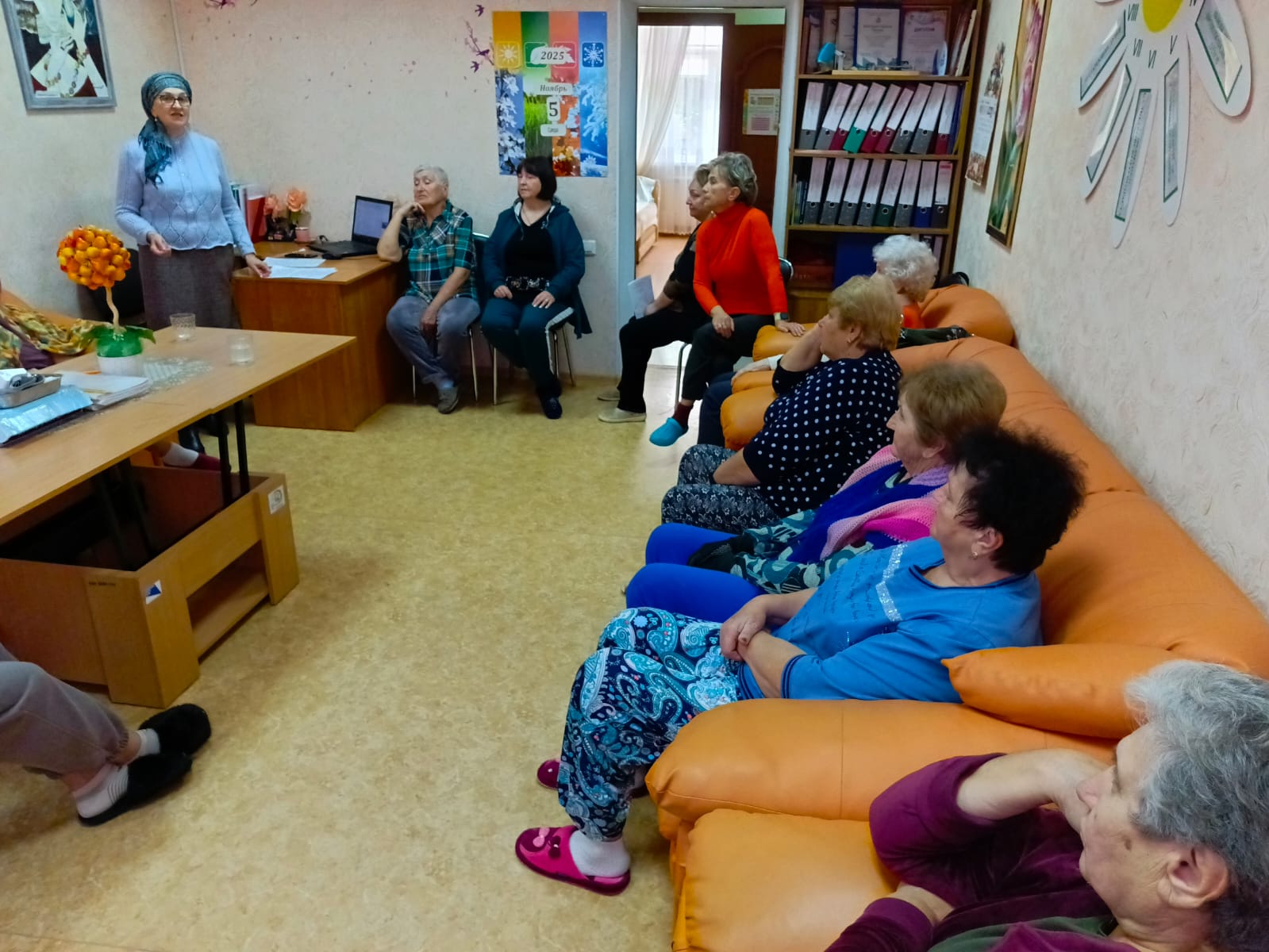 В Предгорном центре состоялось очередное заседание литературно-поэтического клуба. Волонтер центра Ольга Чуднова по традиции встретилась с получателями услуг и рассказала им о местном поэте-песеннике, воспевающем Кавминводы в частности и весь Кавказ в целом, Сергее Рыбалко, известных российских поэтессах и таком понятии как «Поэтическая осень». Краевед по профессии Ольга Викторовна традиционно удивила слушателей широкими познаниями о крае, знаменитых людях, любящих его и любовью к литературе.