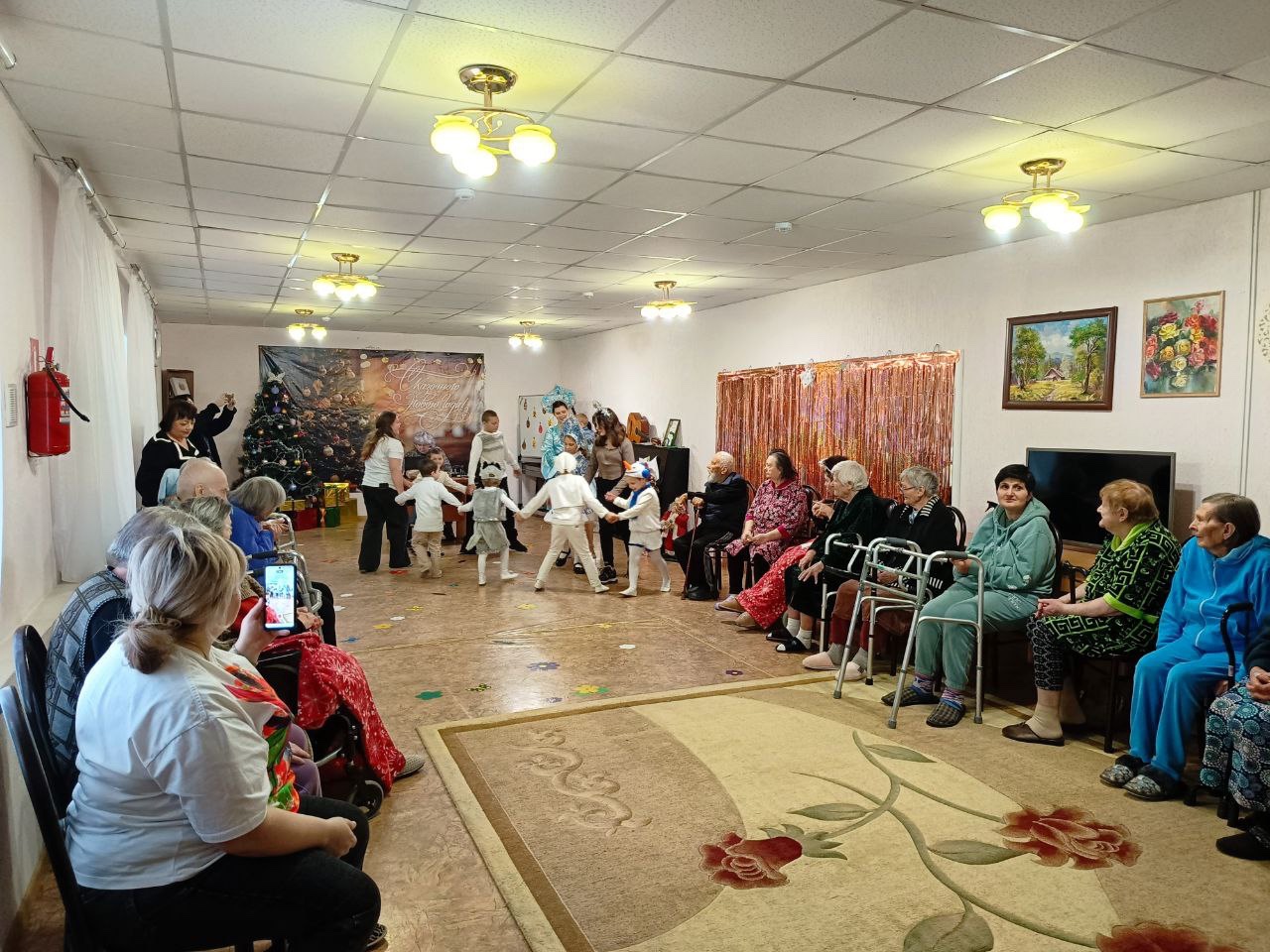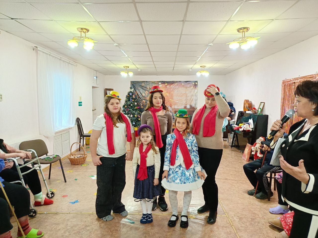 В стационарном отделении с. Винсады прошел веселый новогодний праздник, в котором приняли участие ребята, занимающиеся творчеством в местном доме культуры. Звездочки, Сегурочки, Снеговичок и даже конь в пальто приехали на праздник к нашему старшему поколению. Песни, танцы, загадки, стихи и, конечно, подарки подняли настроение как гостям, так и хозяевам праздника.