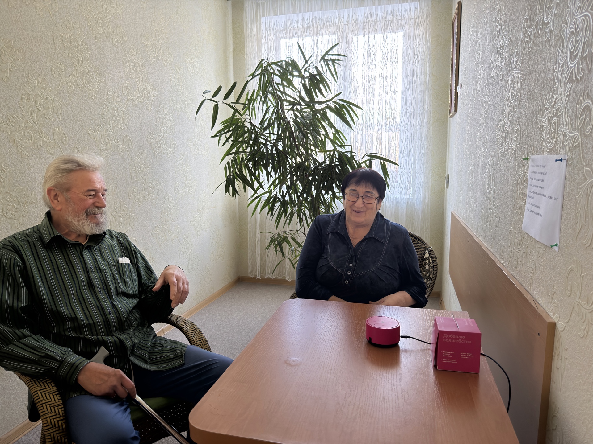 Многие люди старшего поколения совсем не дружат с новыми технологиями. Смартфоны кажутся слишком сложными, а компьютеры — пугающими. Именно поэтому идея применения голосового помощника для получателей услуг в стационарных отделениях родилась в Предгорном центре.