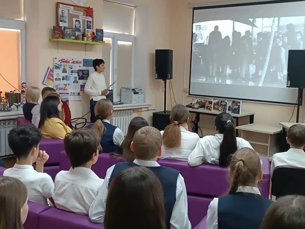 После просмотра состоялось открытое обсуждение. Дети активно участвовали в интерактивном блоке: отвечали на вопросы специалиста, делились личными впечатлениями и размышляли о цене мира, преемственности поколений и ответственности за сохранение исторической правды. Такая форма работы позволила не просто усвоить учебный материал, но и осмыслить его на эмоционально-личностном уровне.