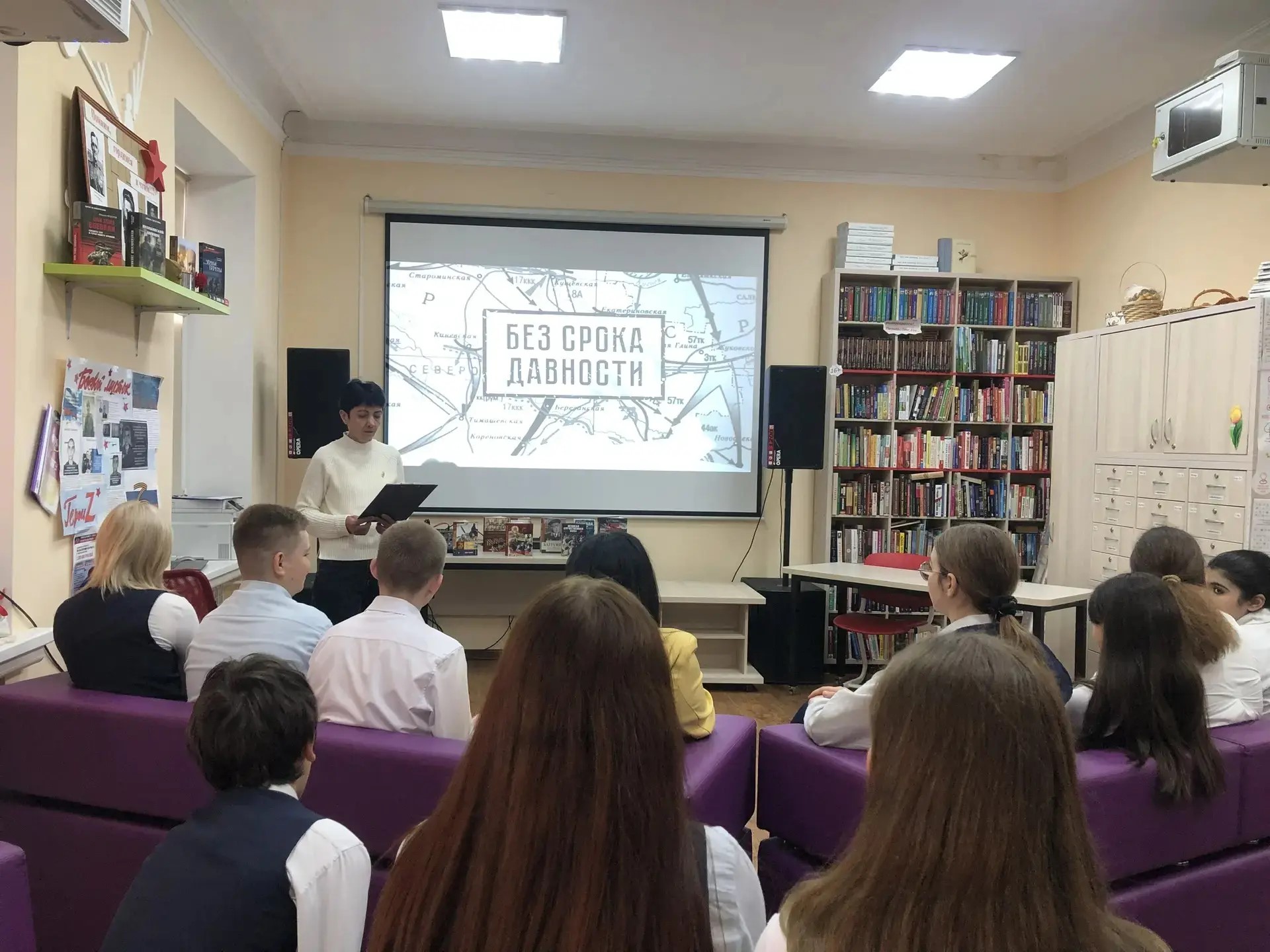 Во вступительной части встречи специалист доступно и бережно раскрыла понятие «геноцид», представила документально подтверждённые факты преступлений нацистов и их пособников на территории СССР в годы Великой Отечественной войны. Особый акцент был сделан на том, почему память об этих трагических страницах истории требует бережного отношения и не может быть предана забвению.