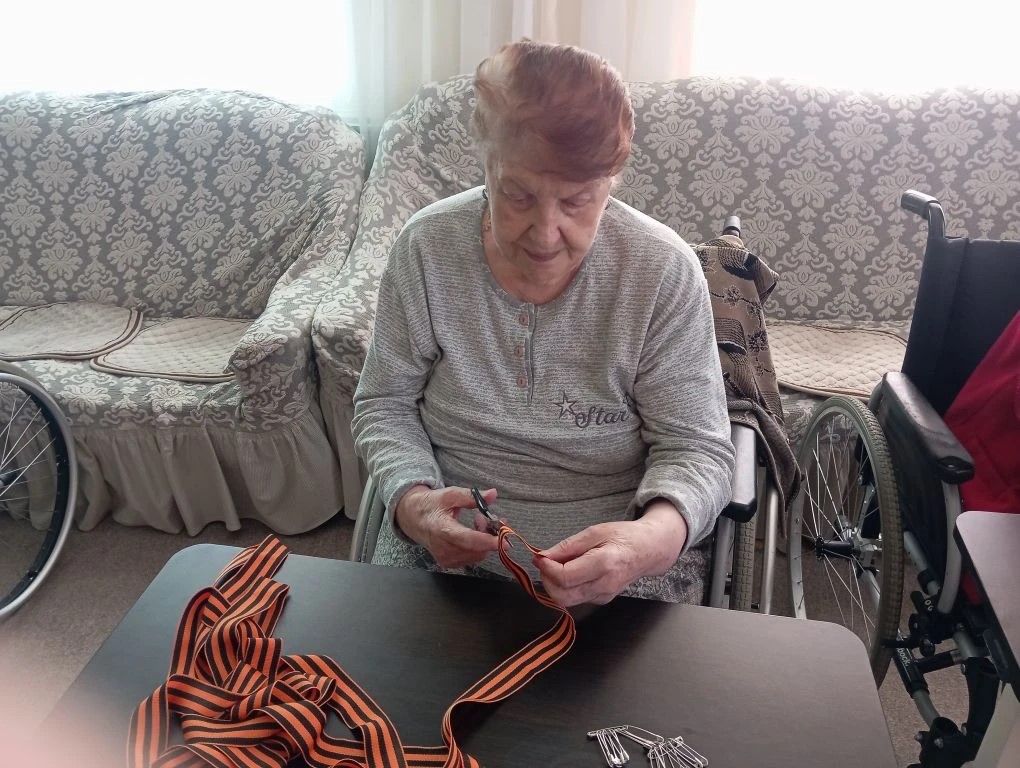 Особым моментом подготовки стало изготовление георгиевских лент своими руками. Проживающие и сотрудники отделения совместно создавали главный символ праздника: аккуратно складывали ленточки, крепили булавки, добавляли декоративные элементы. В процессе рождались воспоминания, истории из семейных архивов и тёплые беседы о тех, кто ковал Великую Победу.